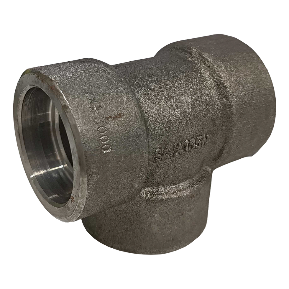 Reducing tee forged pipe fitting is made in accordance with ASME B16.11, MSS-SP-79\83\95\97, and BS3799 standards. Fittings made through the forging process are commonly used in high pressure and corrosive conditions as they have a thicker wall compared to the usual pipe fittings. Reducing tee fitting features two ports of the same size and one port of a different size for connecting different diameter pipes at a 90°.